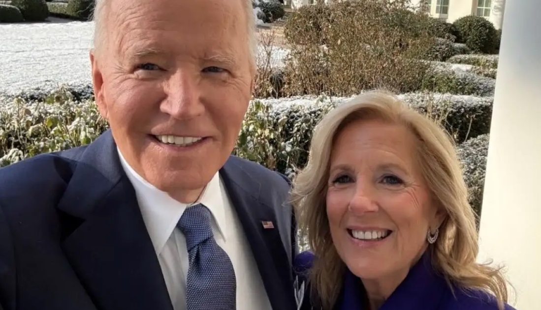 Το ζευγάρι πόζαρε μπροστά από τον Λευκό Οίκο και τράβηξε μια φωτογραφία, η οποία αναρτήθηκε στο Χ από τον Αμερικανό πρόεδρο. «Μια ακόμη selfie για το δρόμο. Σε αγαπάμε, Αμερική», ανέφερε ο Μπάιντεν από τον επίσημο λογαριασμό του στο X.