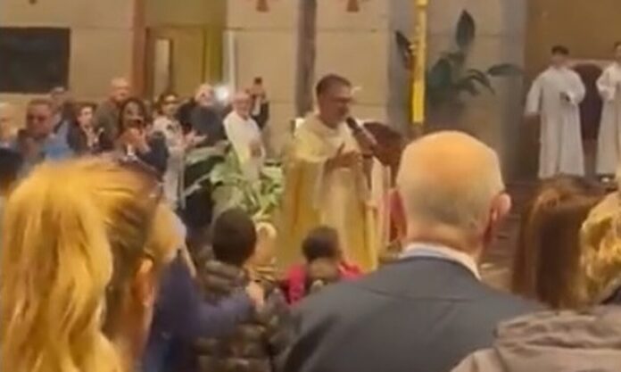 Συγκεκριμένα, στον καθεδρικό ναό Σαν Βιτάλε στην περιοχή Φουοριγκρότα, ιερέας πήρε το μικρόφωνο και άρχισε να τραγουδά ένα γνωστό σύνθημα της εξέδρας των «παρτενοπέι», το «Saro con te»!