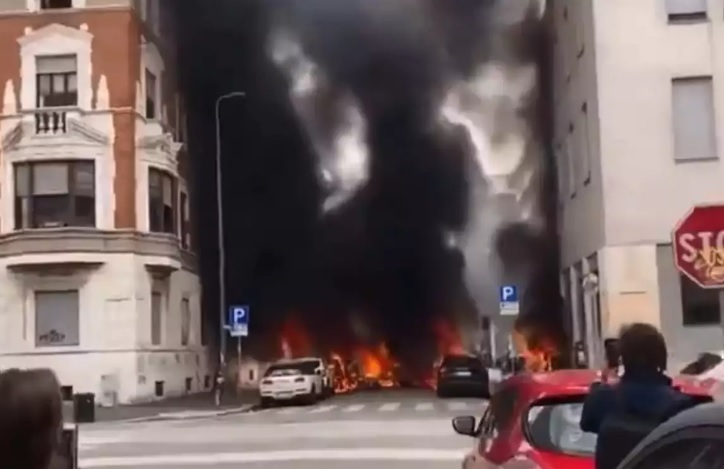 Ισχυρή έκρηξη σημειώθηκε νωρίς το μεσημέρι στο Μιλάνο, όταν ένα φορτηγάκι που μετέφερε φιάλες οξυγόνου τυλίχθηκε στις φλόγες.