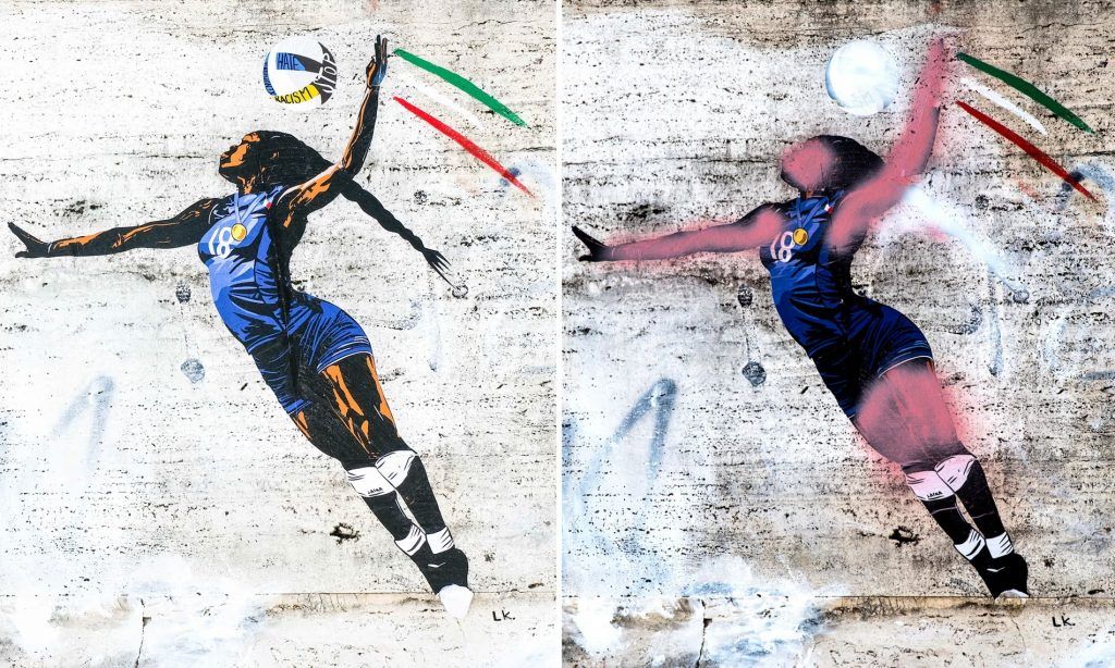 Τοιχογραφία που τιμά την ιταλίδα Ολυμπιονίκη Πάολα Εγκόνου έγινε στόχος «χυδαίας» ρατσιστικής επίθεσης από βανδάλους που έβαψαν με ροζ σπρέι το σώμα της.