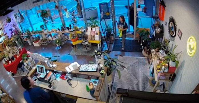 Η άγνωστη συνέχισε να παραμονεύει έξω. Ο 10χρονος Σάμι που κατάλαβε ότι κάτι δεν πήγαινε καλά κατευθύνθηκε προς το ταμείο και ψιθύρισε κάτι στην ταμία.