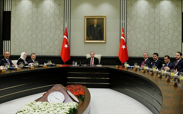 Το υπουργικό συμβούλιο συνεδρίασε παρουσία για πρώτη φορά 16 υπουργών, που διορίστηκαν από τον Ερντογάν, ο οποίος εμπιστεύτηκε στον γαμπρό του, Μπεράτ Αλμπαϊράκ, το ευαίσθητο χαρτοφυλάκιο των Οικονομικών, σε μια εποχή αναταράξεων στην τουρκική οικονομία.