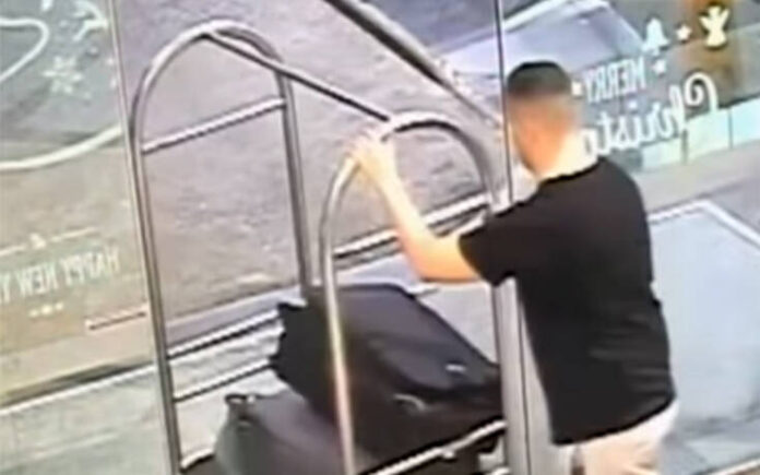 Ο 28χρονος Jesse Shane Kempson μεταφέρει δύο βαλίτσες στον ανελκυστήρατου ξενοδοχείου στο Όκλαντ, σύμφωνα με το ρεπορτάζ της «Sun».