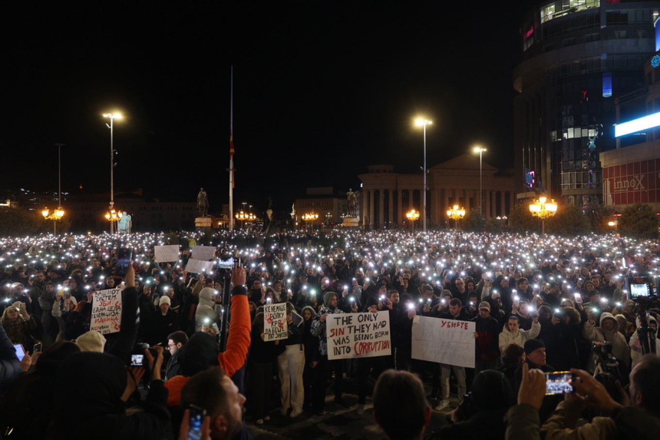 Πάνω από 5.000 κάτοικοι των Σκοπίων συμμετείχαν απόψε σε βουβή συγκέντρωση διαμαρτυρίας στην κεντρική πλατεία της πόλης, σχετικά με την τραγωδία στο Κότσανι όπου 59 άνθρωποι, σχεδόν όλοι τους νεαρής ηλικίας, βρήκαν τον θάνατο από πυρκαγιά που ξέσπασε σε νυχτερινό κλαμπ τα ξημερώματα της περασμένης Κυριακής.