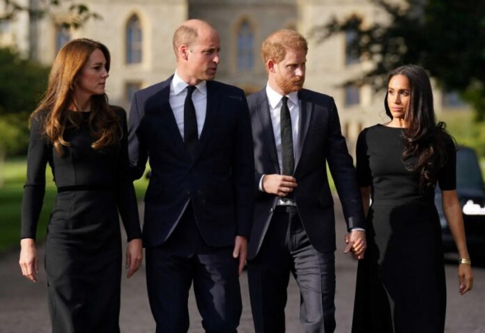 Η Μέγκαν Μαρκλ και ο πρίγκιπας Χάρι είχαν έρθει μαζί με τον Πρίγκιπα και την Πριγκίπισσα της Ουαλίας στο Κάστρο του Ουίνδσορ για να χαιρετίσουν τους πενθούντες που απέτισαν τα σέβη τους στη βασίλισσα το Σάββατο, όταν ξέσπασε η τρελή θεωρία για το μικρόφωνο στο Twitter.