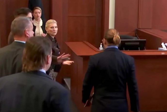 Η Χερντ, με μια φοβισμένη έκφραση στο πρόσωπό της, έκανε ένα βήμα πίσω από τον πρώην της, προτού ένας υπάλληλος του δικαστηρίου βάλει το χέρι του στο στήθος του Ντεπ για να τον κατευθύνει προς την άλλη πλευρά. Ο σταρ των «Πειρατών της Καραϊβικής» ανασήκωσε τους ώμους του αδιάφορα και γύρισε την πλάτη του στην Χερντ, καθώς μια άλλη υπάλληλος τη συνόδευε στη θέση της.