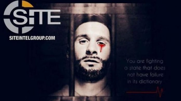 Το φόβο θέλει να σπείρει στον ποδοσφαιρικό κόσμο το ISIS, που αυτή τη φορά στοχοποίησε το αστέρι της Μπαρτσελόνα, Λιονέλ Μέσι φτιάχνοντας μια αφίσα στην οποία ο ποδοσφαιριστής χύνει ματωμένα δάκρυα.