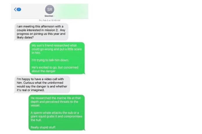 Ένας Αμερικανός μεγιστάνας που απέρριψε εισιτήρια για εκείνον και τον γιο του στο καταδικασμένο υποβρύχιο του «Τιτάνα» αποκαλύπτει μηνύματα που δέχτηκε από το αφεντικό της εταιρείας. Προσπαθούσε να του πουλήσει θέσεις με μειωμένη τιμή την τελευταία στιγμή καθ μάλιστα με έκπτωση ύψους 100.000 δολαρίων, λέγοντάς του οτι το ταξίδι με το βαθυσκάφος «ήταν πιο ασφαλές από το να διασχίσεις τον δρόμο»