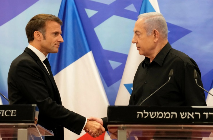 Κατά την διάρκεια κοινής συνέντευξης Τύπου με τον πρωθυπουργό του Ισραήλ, Μπέντζαμιν Νετανιάχου, μετά την συνάντησή τους στην Ιερουσαλήμ, ο Εμανουέλ Μακρόν διαβεβαίωσε τον ισραηλινό πληθυσμό για την «αλληλεγγύη και τα συναισθήματα» της Γαλλίας, λέγοντας ότι και για την χώρα του, που θρηνεί 30 Γάλλους νεκρούς, η επίθεση της Χαμάς αποτελεί «μαύρη σελίδα και της δικής μας ιστορίας».