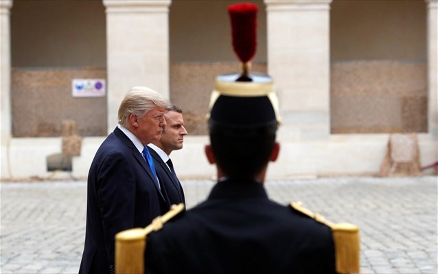 Τον Αμερικανό πρόεδρο Ντόναλντ Τραμπ υποδέχτηκε ο πρόεδρος της Γαλλίας Εμανουέλ Μακρόν στο Μέγαρο των Απομάχων στο πλαίσιο της διήμερης επίσκεψής του στο Παρίσι, κατά τη διάρκεια της οποίας θα παραστεί το πρωί της Παρασκευής στους εορτασμούς για την εθνική γιορτή της 14ης Ιουλίου.