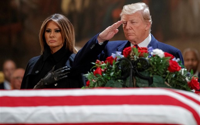 Την Τετάρτη, ημέρα εθνικού πένθους στις ΗΠΑ, ο Τραμπ θα παραστεί στην κηδεία του πρώην προέδρου στον εθνικό καθεδρικό ναό της Ουάσιγκτον.