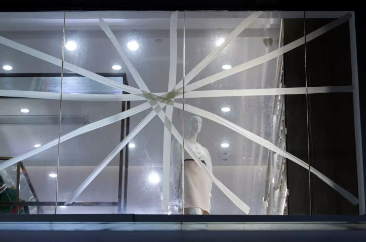 Ταινίες για να μην σπάσουν τα τζάμια καφετέριας που βρίσκεται δίπλα στη θάλασσα