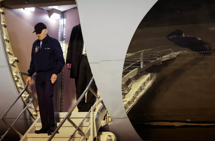 Η Daily Mail έφερε στη δημοσιότητα βίντεο με τον Τζο Μπάιντεν να κατεβαίνει από το Air Force One. Στο βίντεο φαίνεται ο Μπάιντεν να πασχίζει να κατέβει από το αεροπλάνο.