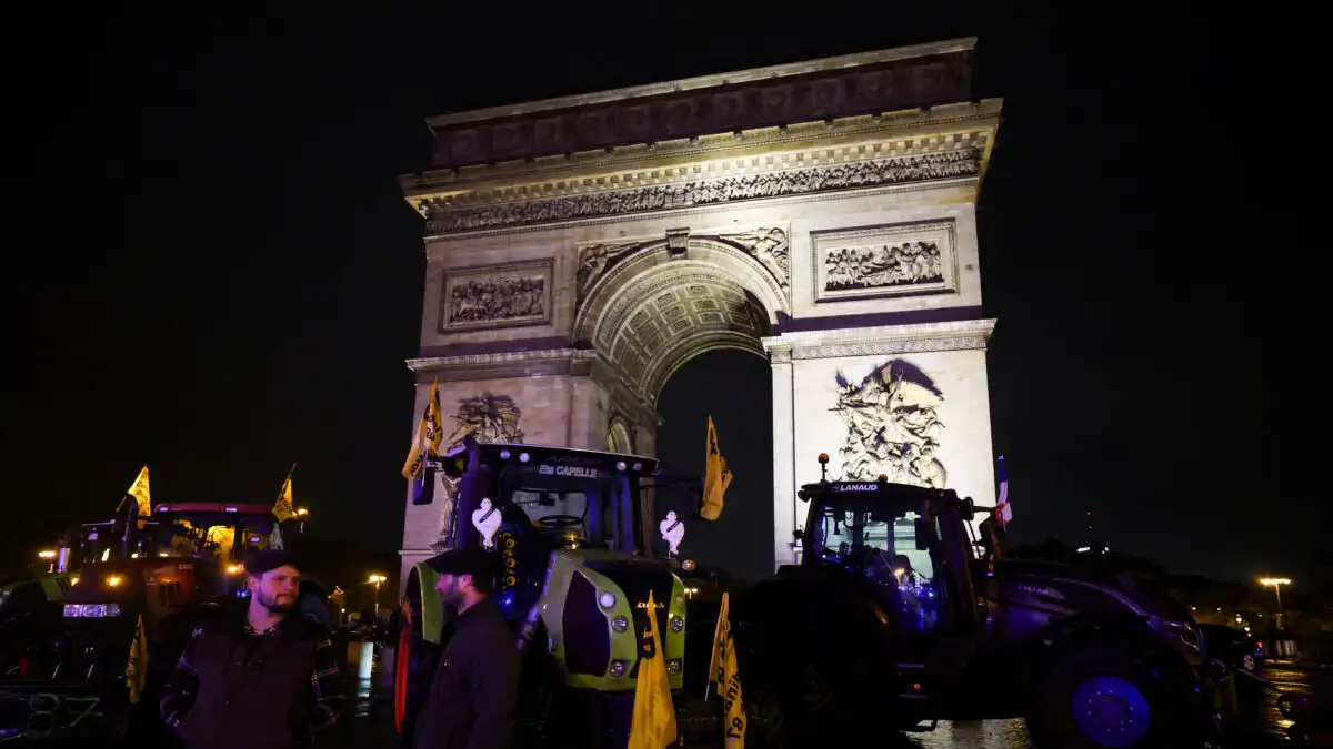 Σε αγροτικό κλοιό και η Γαλλία με αγρότες και κτηνοτρόφους να «σεργιανίζουν» μέσα στο Παρίσι και να παρκάρουν τα τρακτέρ τους κοντά στον Πύργο του Άιφελ και στην Αψίδα του Θριάμβου.