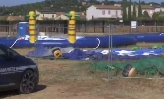 Ένας άνδρα 35 ετών έχασε τη ζωή του και ένα μικρό παιδί τραυματίστηκε σοβαρά όταν το τεράστιο φουσκωτό παιχνίδι υδάτινου πάρκου που βρίσκονταν παρασύρθηκε από τους ισχυρούς ανέμους στην περιοχή Βαρ της Γαλλίας.