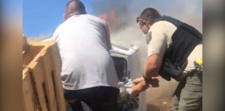 Δραματική διάσωση οδηγού που εγκλωβίστηκε σε φλεγόμενο όχημα
