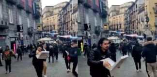 Νεαρός τρέχει να σωθεί από επεισόδια… τρώγοντας πίτσα (βίντεο)