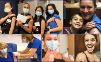 Υγειονομικοί σε όλο τον κόσμο φωτογραφίζονται με υπερηφάνεια μετά τον εμβολιασμό τους
