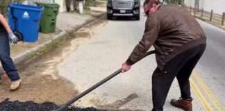 Έπιασε το φτυάρι κι έριξε τσιμέντο σε λακκούβα της γειτονιάς του