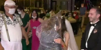 Φόρεσε σακούλα για να φιλήσει τη νύφη (video)