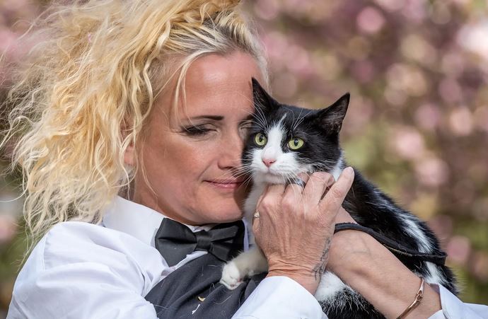 Φορώντας ένα σμόκιν, η 49χρονη Deborah Hodge παντρεύτηκε στις 19 Απριλίου μτην γάτα της σε ένα πάρκο στο νοτιοανατολικό Λονδίνο.
