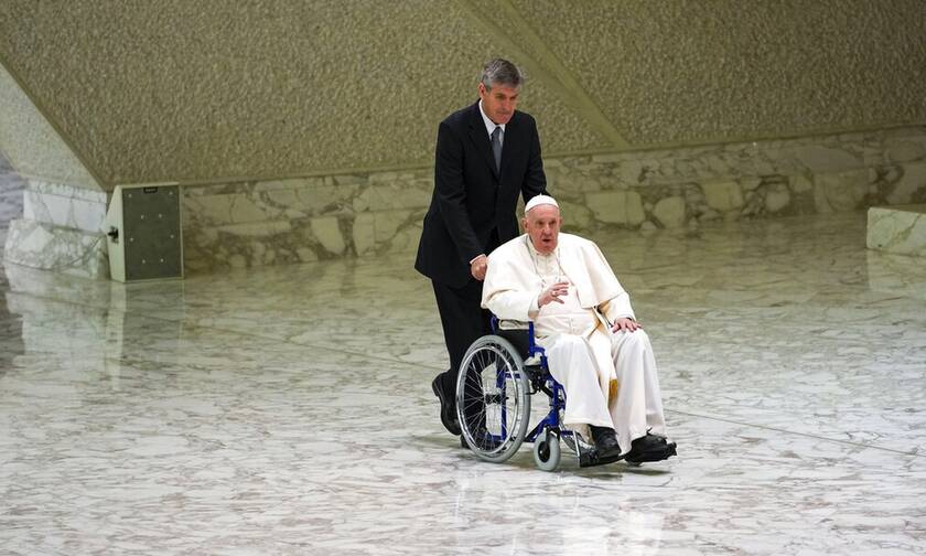 Ο πάπας Φραγκίσκος χρησιμοποίησε σήμερα αναπηρικό αμαξίδιο για πρώτη φορά δημοσίως από τότε που επανεμφανίστηκε ο οξύς πόνος στο γόνατό του περιορίζοντας την ικανότητά του να περπατάει.