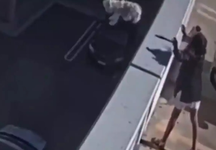 Βίντεο που κυκλοφορεί στο διαδίκτυο δείχνει την 26χρονη έξω από το αυτοκίνητό της στην ταράτσα εμπορικού κέντρου. Η γυναίκα κρατά στην αγκαλιά της τον σκύλο, την Πρίνσες, και κινείται προς το περβάζι. Τελευταία στιγμή κάνει μεταβολή και γυρίζει πίσω στο αυτοκίνητο. Ωστόσο, γυρνά και πάλι στο περβάζι και πετά την μικρούλα Πρίνσες από το ψηλό κτήριο.