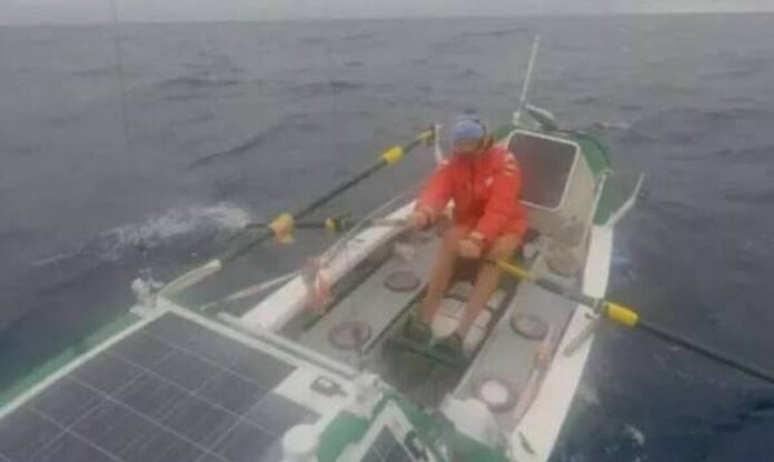 Ο πρώην επαγγελματίας παίκτης του ράγκμπι χρησιμοποίησε ένα σκάφος 20 ποδιών με το όνομα Cushlamachree, κάνοντας κουπί και παλεύοντας με τα κύματα του ωκεανού για για 2.686 ώρες.