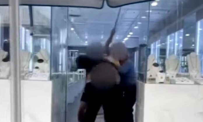 Το περιστατικό συνέβη στο κοσμηματοπωλείο Meza’s Jewelry Store στο Ελ Μόντε, ανατολικά του Λος Άντζελες στην Καλιφόρνια. Οι εικόνες που έχει καταγράψει η κάμερα ασφαλείας σοκάρουν.