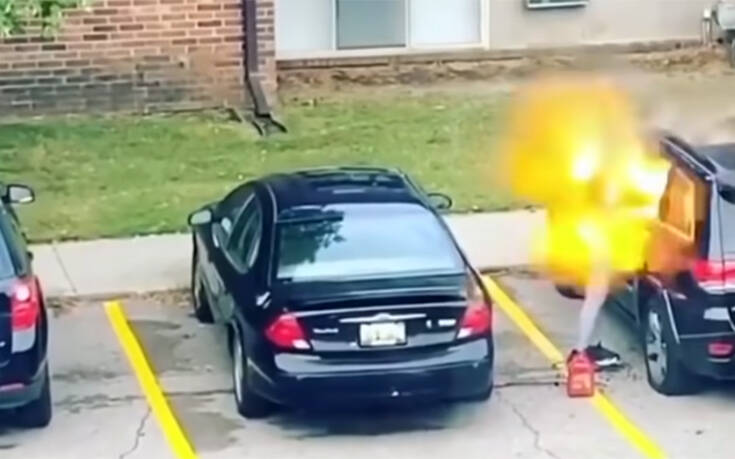 Όταν φαίνεται να προσπαθεί κάτι να κάνει στο πίσω κάθισμα, τότε ακούγεται η ισχυρή έκρηξη και οι φλόγες πετάγονται από το αυτοκίνητο. Η γυναίκα υπέστη μικροτραυματισμούς και εγκαύματα στο πρόσωπο.Δεν έχει γίνει ακόμη γνωστό τι «πυροδότησε» την εκδίκηση, αλλά σύμφωνα με το ρεπορτάζ μάλλον η γυναίκα έπεσε θύμα απιστίας.