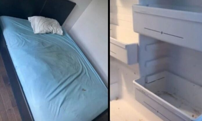Σκόνη παντού, λερωμένα σεντόνια, λερωμένο ψυγείο, λερωμένο μπάνιο συνέθεταν το σκηνικό, που την ανάγκασε να στείλει μήνυμα στον ιδιοκτήτη για να του κάνει παράπονα.