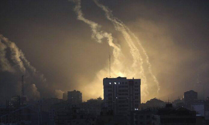 Καπνός υψώνεται στη Λωρίδα της Γάζας μετά τις ισραηλινές επιδρομές νωρίς το πρωί του Σαββάτου.