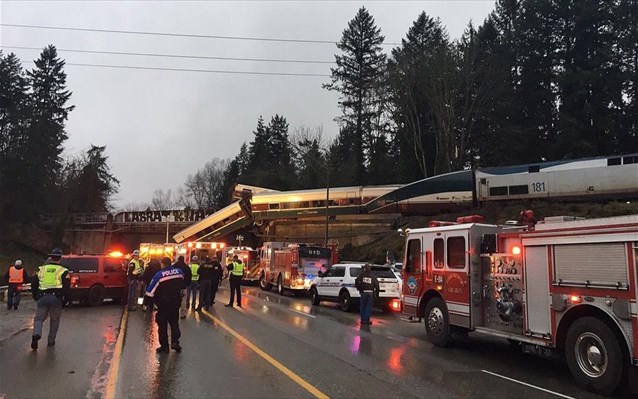 «Πολλοί» άνθρωποι έχασαν τη ζωή τους -χωρίς μέχρι στιγμής να είναι γνωστός ο ακριβής απολογισμός- από τον εκτροχιασμό της αμαξοστοιχίας περίπου 64 χιλιόμετρα νότια της πόλης Σιάτλ, κοντά στην πόλη Τακόμα στην πολιτεία της Ουάσιγκτον, σύμφωνα με τις τοπικές αρχές.