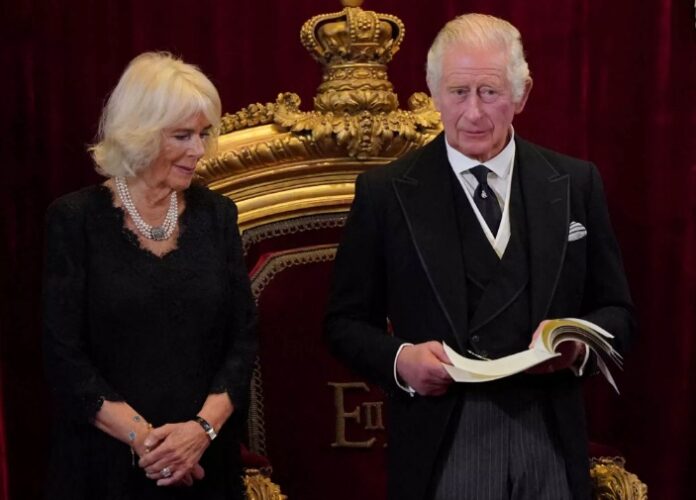 Στο Παλάτι του Αγίου Ιακώβου, ο βασιλιάς Κάρολος Γ’ υπέγραψε τη διακήρυξη ότι αναλαμβάνει τα καθήκοντα του μονάρχη της Βρετανίας, με τον πρίγκιπα Γουίλιαμ και την βασιλική σύζυγο, Καμίλα, να υπογράφουν επίσης ως μάρτυρες.