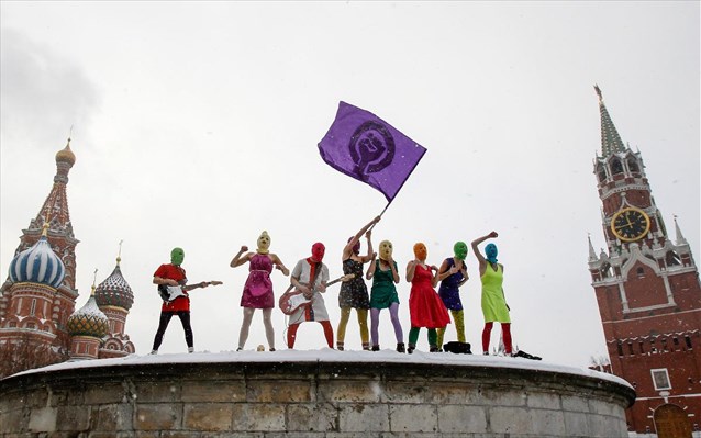 H Μαρία Αλιόχινα, μέλος του ρωσικού συγκροτήματος των Pussy Riot, συνελήφθη στη Μόσχα αφού ανήρτησε πανό μπροστά από την έδρα των ρωσικών υπηρεσιών ασφαλείας (FSB) με αφορμή τη συμπλήρωση 100 ετών από την ίδρυση της υπηρεσίας Tσεκά (Tchéka), πολιτικής αστυνομίας των Μπολσεβίκων.