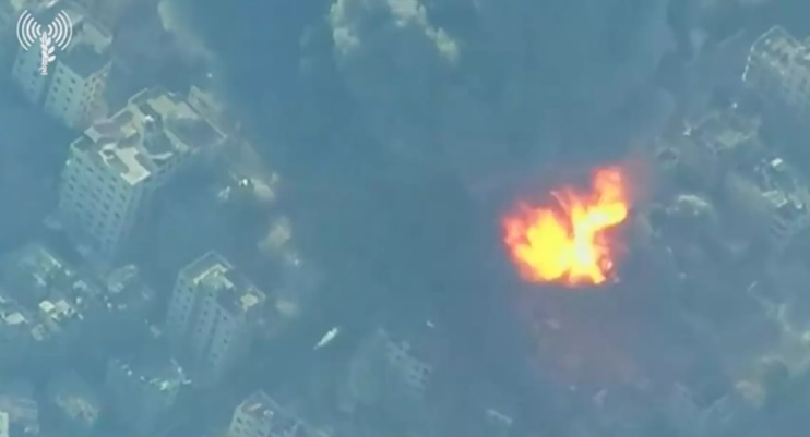 Δείτε την στιγμή που η ρουκέτα χτυπάει το κτίριο και αμέσως τυλίγεται στις φλόγες.