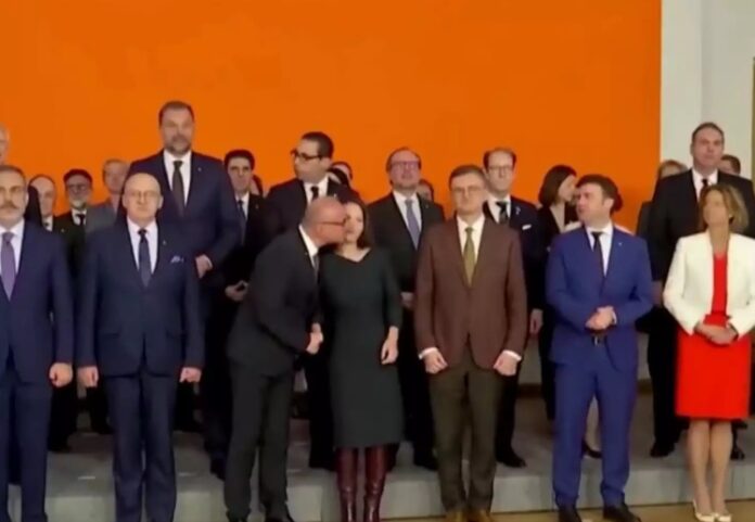 Ο υπουργός Εξωτερικών της Κροατίας Γκόρνταν Γκρίλιτς – Ράντμαν έκανε κίνηση για να φιλήσει την Αναλένα Μπέρμποκ, τη στιγμή της καθιερωμένης «οικογενειακής» φωτογραφίας των Ευρωπαίων υπουργών Εξωτερικών στη σύνοδο στο Βερολίνο.