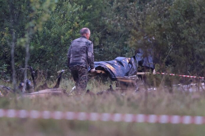 Τα συντρίμμια του αεροσκάφους του Πριγκόζιν που έπεσε στην επαρχία Τβερ, στα βορειοδυτικά της Μόσχας είναι διασκορπισμένα σε ένα πεδίο μήκους 2 χιλιομέτρων, μετέδωσαν την Πέμπτη τα ρωσικά κρατικά μέσα ενημέρωσης. «Μετά την ελεύθερη πτώση του, τα συντρίμμια του αεροσκάφους Embraer διασκορπίστηκαν σε ακτίνα 2 χιλιομέτρων μακριά από το χωριό Κουζένκινο, όπου βρέθηκαν τα περισσότερα συντρίμμια της ατράκτου», ανέφερε το κρατικό πρακτορείο Russia-24. «Η πλειονότητα των συντριμμιών έπεσε κοντά σε γεωργικές επιχειρήσεις».