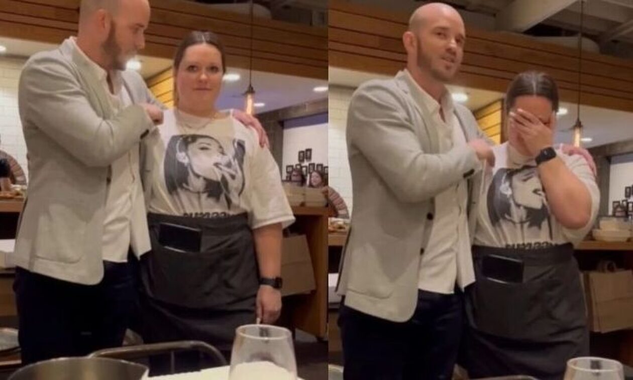 Η συναρπαστική στιγμή ανέβηκε αργότερα στο Instagram από μία από τις παρευρισκόμενες στο δείπνο, τη Rebecca Soto, η οποία έγραψε στη λεζάντα το συγκινητικό κλιπ: «Είμαι ταπεινή που ήμουν μέρος κάτι τόσο όμορφου και γενναιόδωρου πράγματος. Να ευλογήσω κάποιον άλλο χωρίς να τον γνωρίζω προηγουμένως».