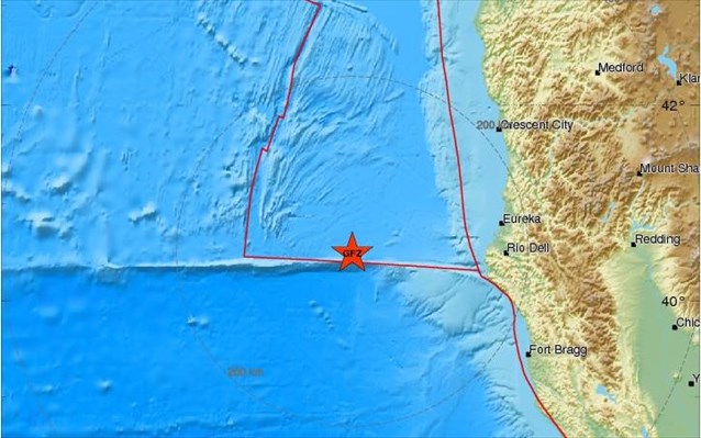 Το επίκεντρο του σεισμού βρίσκεται στον Ειρηνικό Ωκεανό, σε απόσταση περίπου 165 χιλιόμετρων δυτικά του Φερντέιλ της Καλιφόρνιας.
