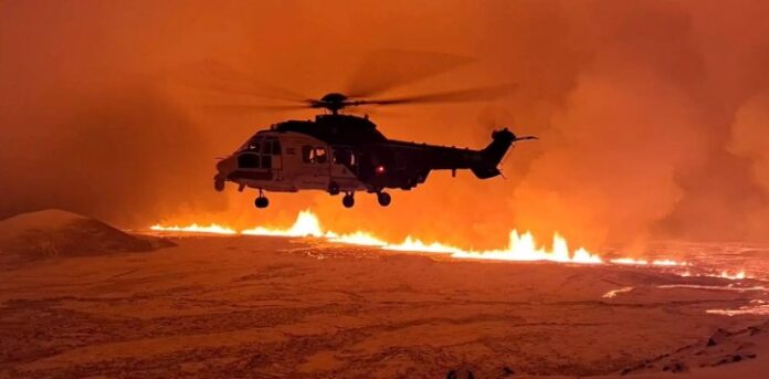 Οδοφράγματα στήνουν οι αρχές της Ισλανδίας σε μια προσπάθεια να περιορίσουν τη λάβα, μετά τη χθεσινή έκρηξη ηφαιστείου, που ρέει σε μία μεγάλη έκταση που ξεπερνά τα 4 χλμ στη χερσόνησο Ρέικανες.