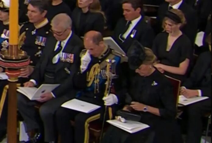 O μικρότερος γιος της βασίλισσας Ελισάβετ, ο πρίγκιπας Έντουαρντ, καθόταν στο Αβαείο την ώρα της λειτουργίας και δεν κατάφερε να συγκρατήσει τα δάκρυά του. Χρησιμοποιώντας ένα χαρτομάντιλο, σκούπιζε τα βουρκωμένα μάτια του για αρκετή ώρα.