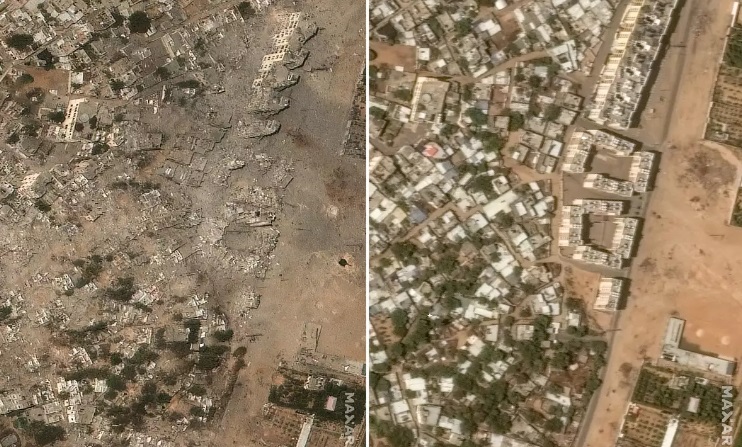 Συγκλονιστικές δορυφορικές εικόνες με το πριν και μετά από τους βομβαρδισμούς του Ισραήλ στη Λωρίδα της Γάζας, δημοσιοποίησε σήμερα (26.10.2024) το Reuters.