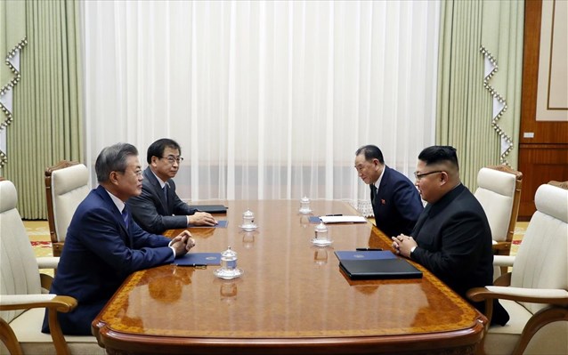Σε συμφωνία με στόχο την αποπυρηνικοποίηση της κορεατικής χερσονήσου, αλλά και σε σειρά μέτρων με στόχο να αναθερμανθούν οι σχέσεις μεταξύ των δύο χωρών, κατέληξαν ο πρόεδρος της Νότιας Κορέας Μουν Τζάε- ιν και ο Βορειοκορεάτης ηγέτης Κιμ Γιονγκ Ουν.