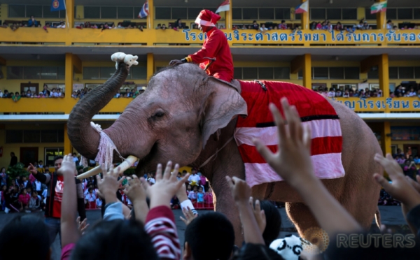 Οι ελέφαντες, μαζί με τους οδηγούς τους που ήταν ήταν ντυμένοι με στολές του Αη Βασίλη, πήγαν στο σχολείο Τζιρασαρτουιτάγια για να μοιράσουν παιχνίδια, μπαλόνια και κεράσματα στα παιδιά.