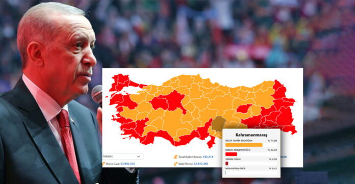 Με καταμετρημένο το 99,87% της ενσωμάτωσης, ο Ερντογάν κατάφερε να κρατήσει τα… προπύργιά του στις σεισμόπληκτες περιοχές παρά την οργή των πολιτών μετά τους σεισμούς της 6ης Φεβρουαρίου και τις ευθύνες που επέρριπταν στην κυβέρνηση.