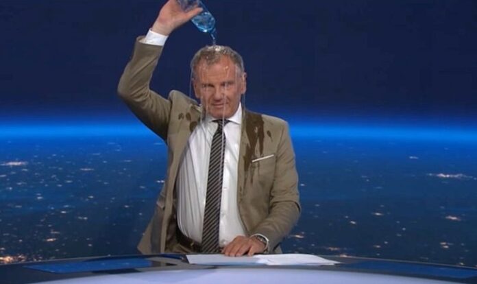 Με τον υδράργυρο να έχει φθάσει στο «κόκκινο» τις τελευταίες ημέρες, ένας παρουσιαστής της αυστριακής τηλεόρασης χάρισε ένα μοναδικό στιγμιότυπο στο τηλεοπτικό κοινό ανά τον κόσμο, καθώς… αυτομπουγελώθηκε σε «ζωντανή» μετάδοση, ως «απάντηση» στο ακραίο «κύμα» καύσωνα που πλήττει όχι μονάχα τη δυτική Ευρώπη, αλλά ολόκληρη τη «Γηραιά Ήπειρο».