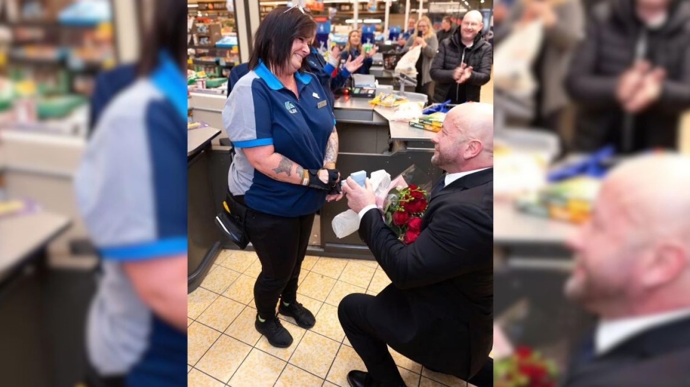 Μια εργαζόμενη σε σούπερ μάρκετ αιφνιδιάστηκε με την πρόταση γάμου που της έκανε ο αγαπημένος της κατά τη διάρκεια μιας πολυάσχολης βάρδιας στο ταμείο.