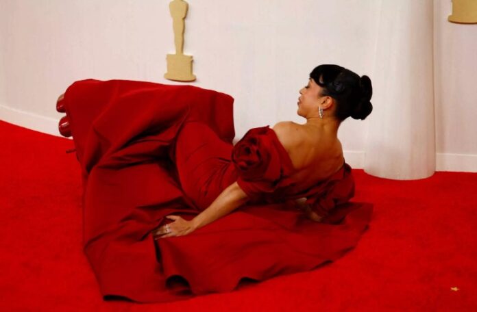 Η ηθοποιός και τηλεπερσόνα Liza Koshy εντυπωσίασε με μια εκθαμβωτική κατακόκκινη τουαλέτα. Ωστόσο, μόλις περπάτησε στον ειδικό διαμορφωμένο χώρο του κόκκινου χαλιού για να ποζάρει με το φόρεμά της και να δείξει στους φωτογράφους τη μοναδική δημιουργία γλίστρησε και βρέθηκε φαρδιά πλατιά πάνω στο κόκκινο χαλί.