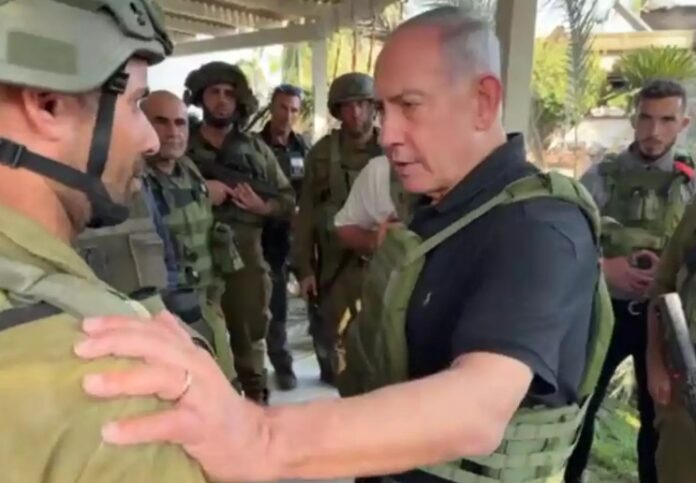 Την ώρα που η μαζική φυγή αμάχων από τη Λωρίδα της Γάζας βρίσκεται σε πλήρη εξέλιξη, αφότου έληξε το τελεσίγραφο του Ισραήλ για εκκένωση, ο Μπενιαμίν Νετανιάχου επισκέφθηκε Ισραηλινούς στρατιώτες που έχουν αναπτυχθεί έξω από το σημείο, όπως ανακοίνωσε το γραφείο του, δίνοντας στη δημοσιότητα και ένα βίντεο από τη συνάντηση αυτήν.